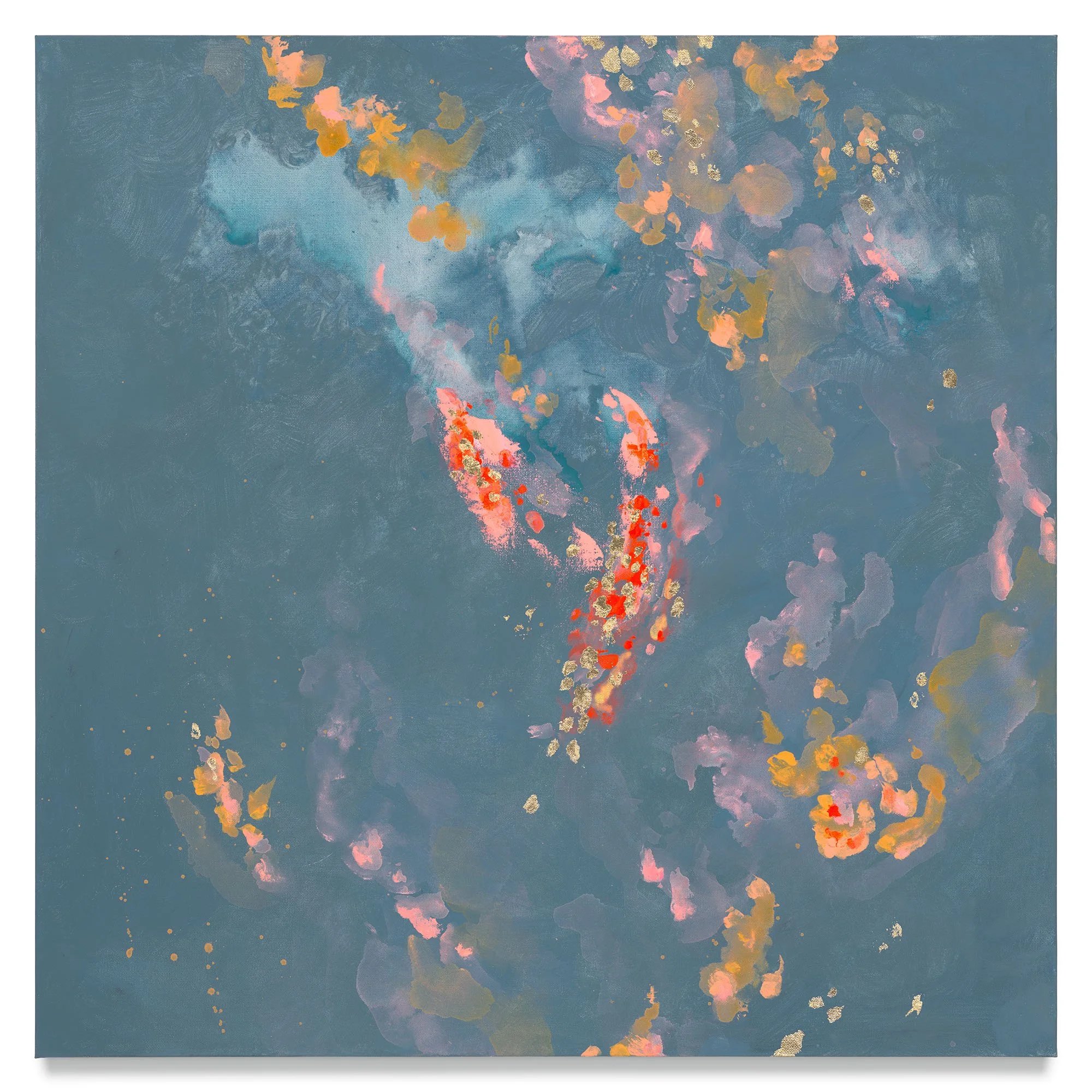 arcylic, mixed media on canvas, metallic gold base